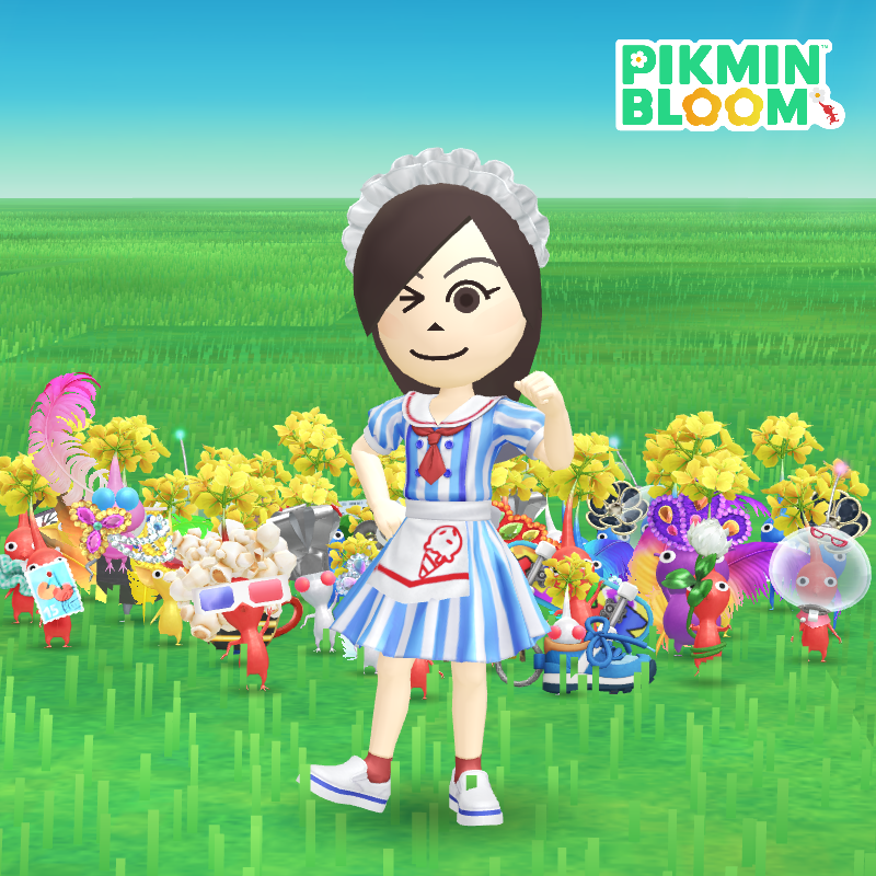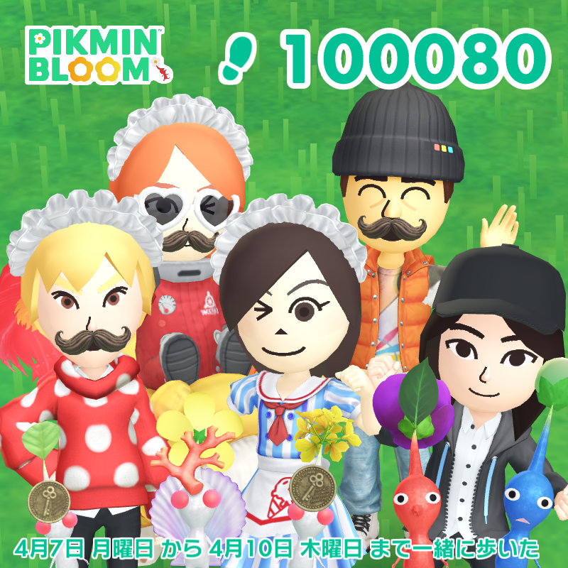 『ピクミンブルーム』ウィークリーチャレンジ歩数終了。4月イベントMii限定アイテム「メイドのホワイトブリム」。