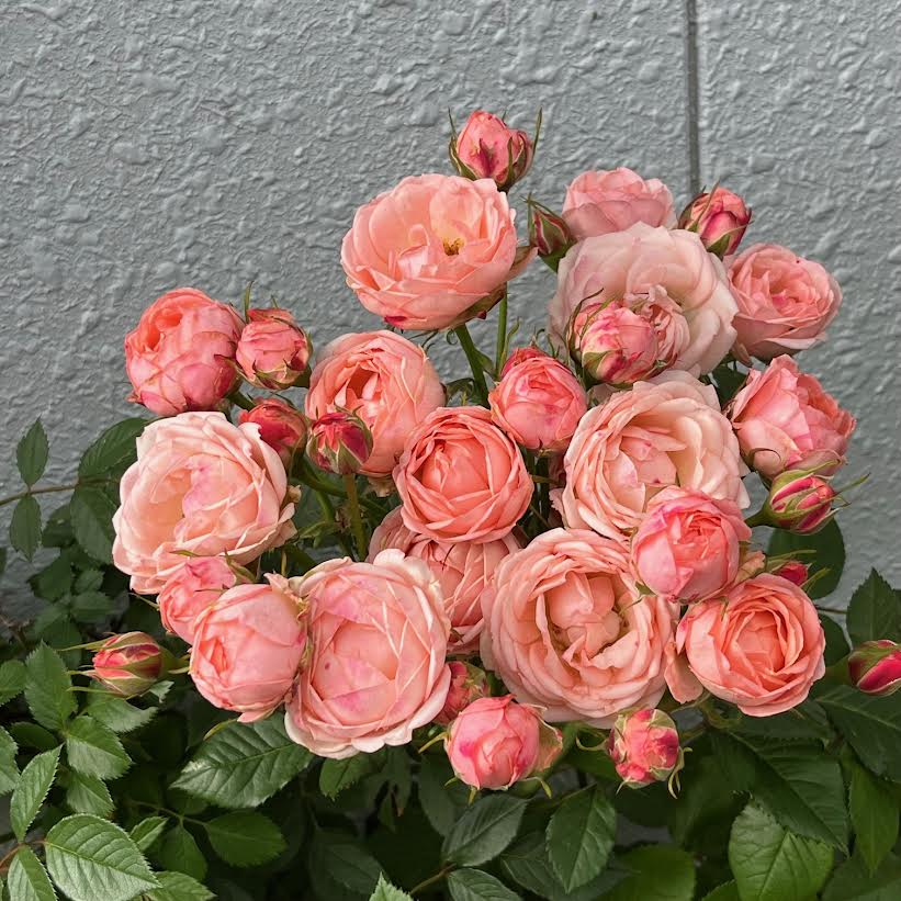 今朝の最低気温は17℃。散歩に出た時には、雲が多かったけれど、歩いているうちに減っていった。サーモンピンクのバラが花束みたいだった。最高気温は13時過ぎに26.4℃。いつのまにか快晴になっていた。